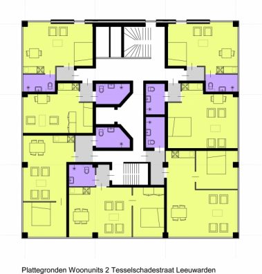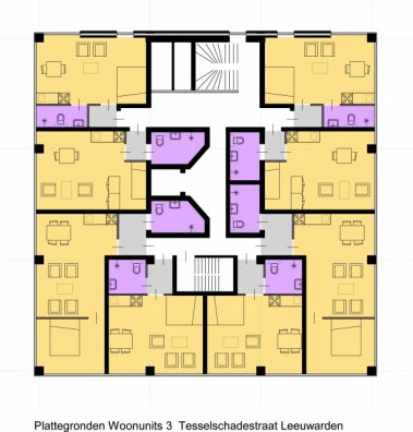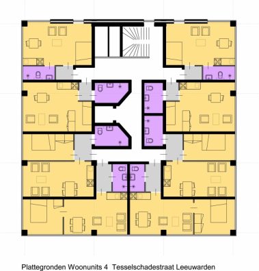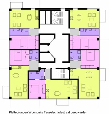 Aan de achterzijde, op de zonnige zuidkant worden 10 tweekamer appartementen met eigen tuin gesitueerd. Op de verdiepingen worden over de drie torens een 40 appartementen gerealiseerd. Ieder appartement heeft